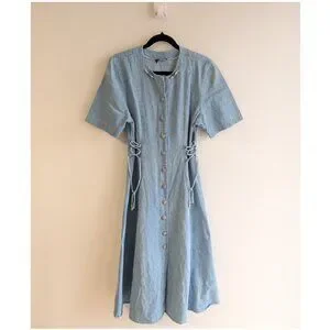 Vintage Midi Denim Dress with full button front with bead detail at neckline