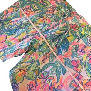 Escape into paradise with these vibrant Lilly Pulitzer linen pants. A splash of tropical exuberance, the colorful floral print evokes sun-drenched beaches and breezy afternoons. The comfortable drawstring waist ensures a perfect fit, while the lightweight linen fabric offers breathability and effortless style. These pants are ideal for a casual brunch, a seaside stroll, or a relaxing vacation getaway.