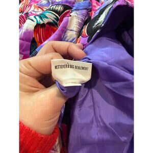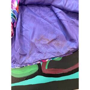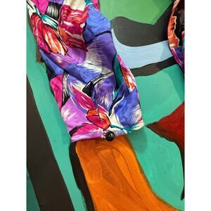 This Liz Claiborne vintage wrap dress features a beautiful purple base with pink floral print. Made of 100% silk, it has a flattering wrap silhouette that drapes elegantly and creates a timeless feminine shape.