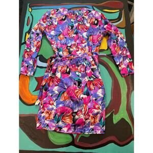 90s 100% silk Vintage Liz Claiborne Wrap Dress Purple Pink Floral Petite 14