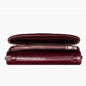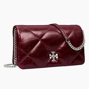 Tory Burch Kira Diamond Distressed Leather Chain Wallet Dark Carmine