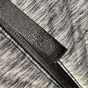 Heathered gray jacket with black accents. Features a zip-up front. Ideal for outdoor adventures.