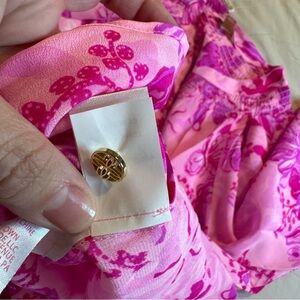 Lilly Pulitzer Elsa Silk Top Parigi Pink Supporting Squad Long Sleeve XXL NWT