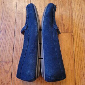 Vionic DEBBIE Leather Suede Loafers 8W Black Comfort Shoes Preppy Twee Academia