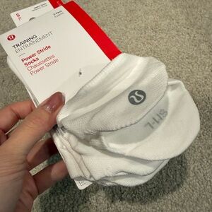 Lululemon Power Stride tab socks in white - 3 pack, size small. Size small listed to fit women’s size 4-6. Brand new in package. Never worn.