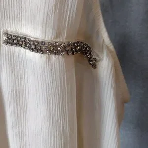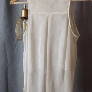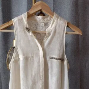 GUESS Off-White Crinkle Chiffon Sleeveless Blouse Small Lace Rhinestone Pockets