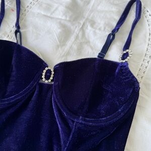 Stunning Y2K Velvet Corset Bustier Top in Deep Purple/Blue