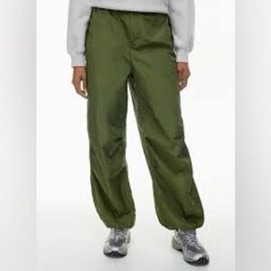 Trendy TNA parachute pants in classic olive green π Lightweight 100% nylon with that signature swishy parachute feel.