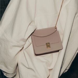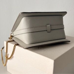 This elegant chalk white crossbody textured leather bag features a sleek design with a gold-tone chain strap. Perfect for any occasion, it combines style and functionality effortlessly. Crossbody, shoulder, and top handle mini bag. Original box, dust bag, and packaging. Only used 3 times. I can share a pic of the original receipt as well if desired. I bought it directly from the Polene website in March of 2025 :)
