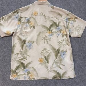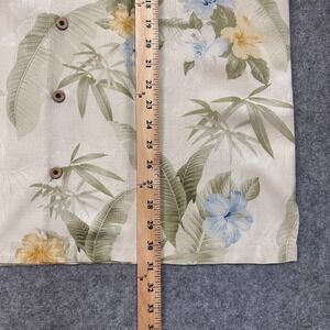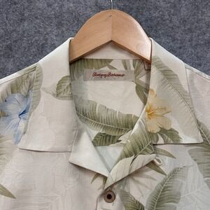 Tommy Bahama Hawaiian Aloha Shirt Mens L 100% Silk Ivory Green Floral Camp EUC