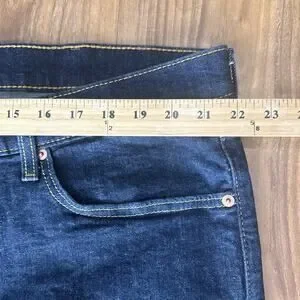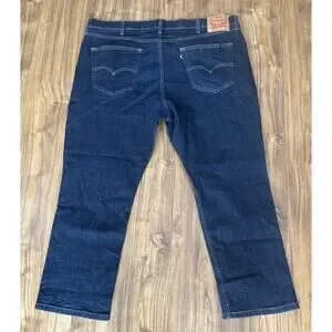 The product is a pair of Levi's 541 Men's Jeans in size 44x29, featuring a dark wash straight denim cotton blend fabric. These jeans have a solid pattern and come with a zip and button closure. The mid-rise waist accommodates the athletic fit, making them comfortable for everyday wear. With a classic 5-pocket design and the iconic Levi's logo accents, these jeans are a versatile and stylish addition to any wardrobe. Perfect for all seasons, these Levi's 541 jeans offer both easy care and a timeless retro look.