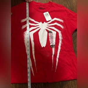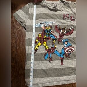 Gray Marvel t-shirt with subtle stripes. Comfortable and stylish. Gently used. Fits like S/M. XS new with tags spider man shirt from Hot Topic. Nee worn. Fits XS/S Will separate.