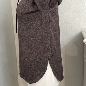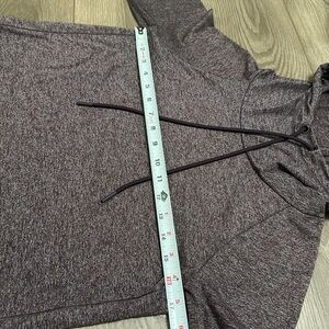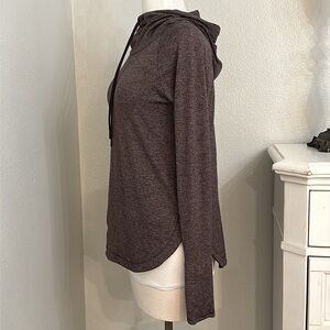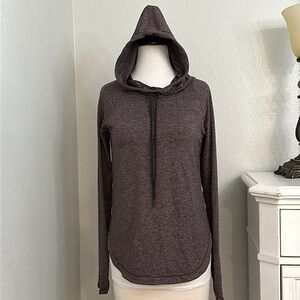 Athleta Uptempo Long Sleeve Thumbholes Hoodie Top Heather Purple Size XS. Excellent condition! 88% polyester/12% Spandex. Soft brushed fabric. Thumb holes at wrists. Curved hem. Color varies slightly due to lighting. Truest color portrayed in second photo. See pictures for measurements.
