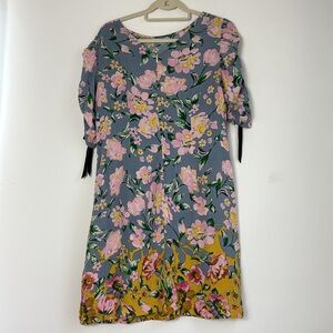 Donna Morgan Floral Print Dress with Blue, Pink and Yellow Flowers Size 8