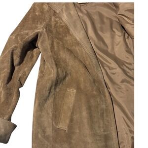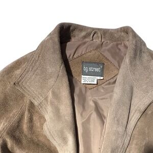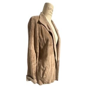 Vintage 80s BG Street Suede Leather Open Front Cardigan Jacket Taupe Women Small