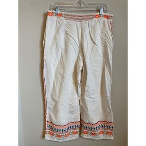 Anthropologie Embroidered Cropped Pants Cream Boho Festival Size 12