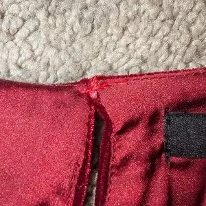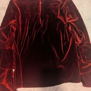 Hi Creature! Thanks for looking into this item since you clicked on it, I appreciate it immensely so heres some background about this piece: It is a red velvet plush three tiered long sleeve victorian style top. It has a keyhole back that I had to put some stitches in. She does say she is a size medium, I feel like it fits closer to a size small with slight room. I bought it a few months ago on Depop, but shes not something I reach for. She's ready to experience another life, not shoved away in the closet. So, ask me questions, I can provide additional measurements.