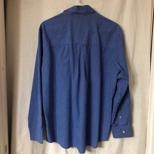 Men’s long sleeve button up shirt. Chaps brand, size L, blue plaid, 60% cotton, 40% polyester (Easy Care)