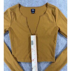 BDG Urban Outfitters Mustard Ribbed Long Sleeve Notch V-Neck Crop Top Size S