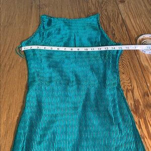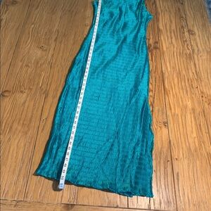 Pink Lily NWOT Textured Green Dress Stretchy PullOn Side Slit Adj Straps Small