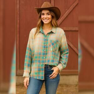 BiBi Button Down Faded Plaid Shirt – XL NWT