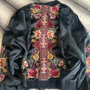 Johnny Was Nepal Bomber Silk Floral Jacket Black