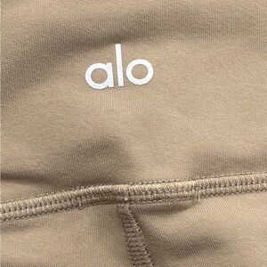 Super fashionable and Comfortable ALO Yoga Pants in the perfect shade of Taupe. Ideal for fitness activities & fashion. signature AloYoga quality.