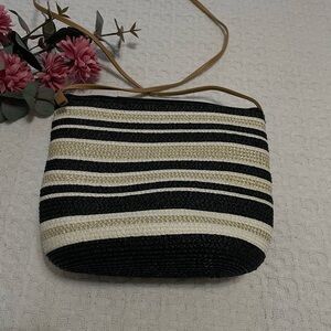 Stylish and versatile, this striped black and cream bag is perfect for any occasion. Its elegant design complements any outfit.