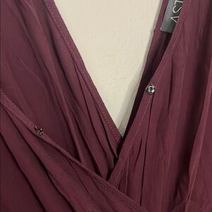Chic plum romper with long sleeves and lace trim. Ideal for a stylish outfit.