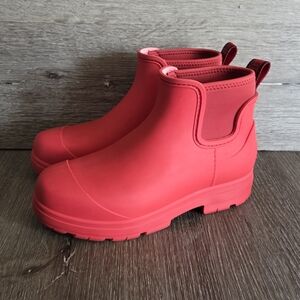 UGG Women's Red Droplet Lug-Sole Waterproof Rain Boots - 7 - Red