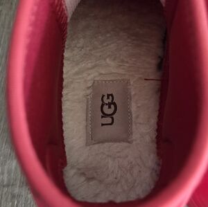 One-piece injection upper with neoprene collar; curly UGGplush™ lining; UGG® logo woven label on sockliner, UGG® logo pull tab; lug sole
