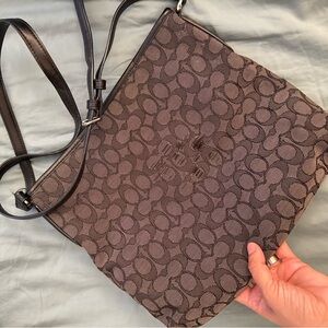 10.Coach Dark Brown Signature Shoulder Bag