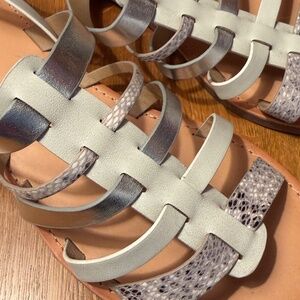 NEW snakeskin-print Silver & white flat strappy sandals sz. 9