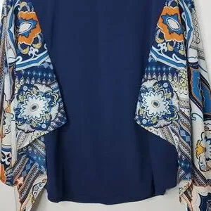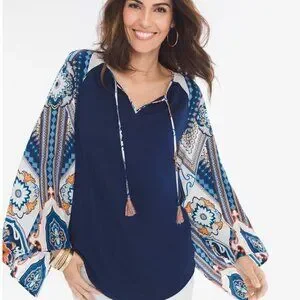 Chicos Cape Sleeve Popover Kimono Status Medallion Tassel Neck Flowy Womens 2 L