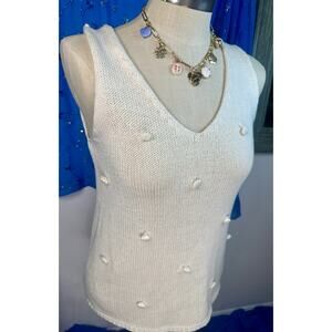 BLU PEPPER Womens Sweater Knit Tank Top Ivory Pom Pom Pullover Sz Large