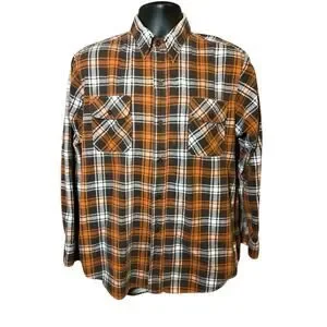 VTG Windbreaker Brand Plaid Flannel L/S Button Up Shirt Grunge Size Large