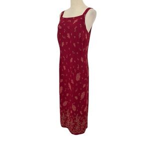 Vtg 90s Eddie Bauer Dress Red Maxi Floral Paisley Boho Square Neck Sz 12