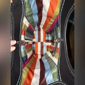 Purchased preowned. Smoke free home. I would keep but unfortunately it doesn't sit on my shoulders well. There are pen marks on the lining visible on pic 6 and 7. On pic 6, there is also one thread missing next to the pen marks, but no tears. No other callouts noted but review pics as they are part of the description. Bag is in very excellent condition for its age.
