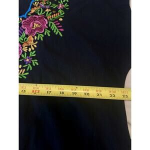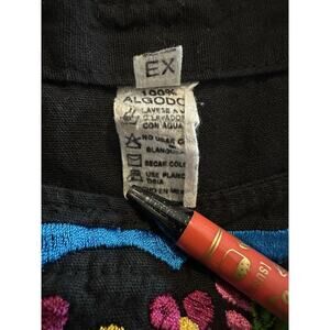 This handmade Mexican floral embroidered top with a tie back in XL size is a vibrant and colorful addition to any woman's wardrobe. The short sleeve top features intricate floral embroidery, perfect for adding a touch of authenticity and charm to your outfit. The tie back detail adds a stylish and unique touch, making it a versatile piece that can be dressed up or down for various occasions. Made with care and attention to detail, this top is a one-of-a-kind piece that reflects the beauty and culture of Mexico.