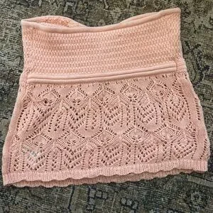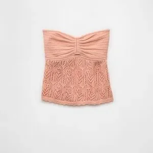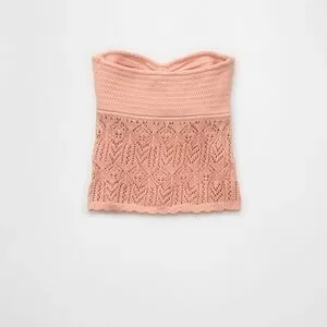 This elegant pink strapless crochet top is perfect for any occasion. Its intricate design offers a stylish and comfortable fit. A must-have addition to your wardrobe.