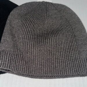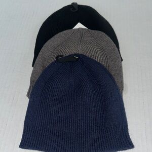 Stylish knit beanie by Alfani. Features a sleek gray, blue, and black design. Perfect for any occasion. Three beanie bundle. New never worn. Excellent condition