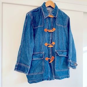 VINTAGE LIZWEAR Denim Coat w/ Leather & Wood Toggles