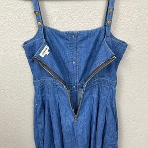 New L’Agence Denim Pleated Esmeralda Dress Button Front Blue Jean Stokes Sz 8