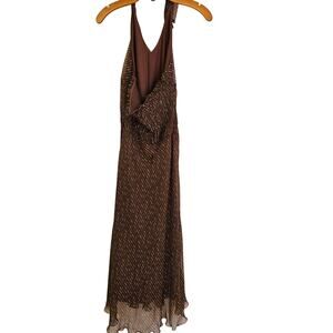 Believe Chiffon Brown Sleeveless Midi Dress Size 12 Casual Travel Wedding Guest