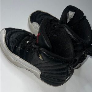 Stylish Jordan sneakers featuring a black and white design with red accents. Perfect for a sporty look.