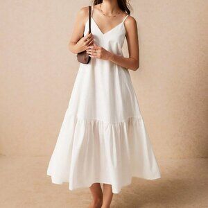 White Casual Women's Elegant Ruffle Hem Swing Skirt
