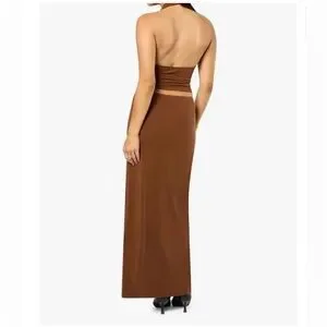 WeWoreWhat Women's Small Pull On Jersey Stretch Midi Skirt in Saddle