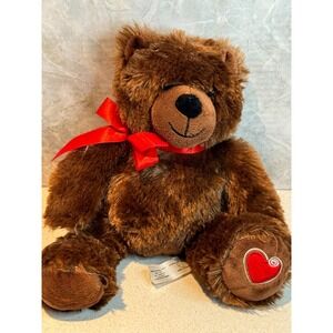 Animal Adventure Brown Teddy Bear Plush Red Ribbon Heart Paw Soft Toy Gift 16"