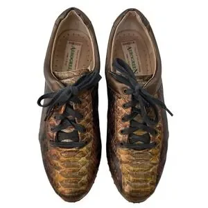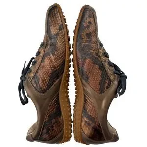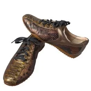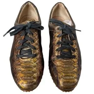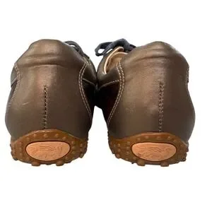 Aerogreen Italy Women Leather Spikeless Golf Shoes Size 8 Gold Bronze Snakeskin Print Luxury