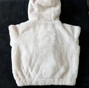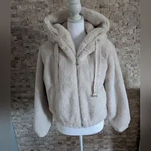 Faux Fur Hooded Cream Beige Cropped Jacket Elevated Loungewear Quiet Luxury XS